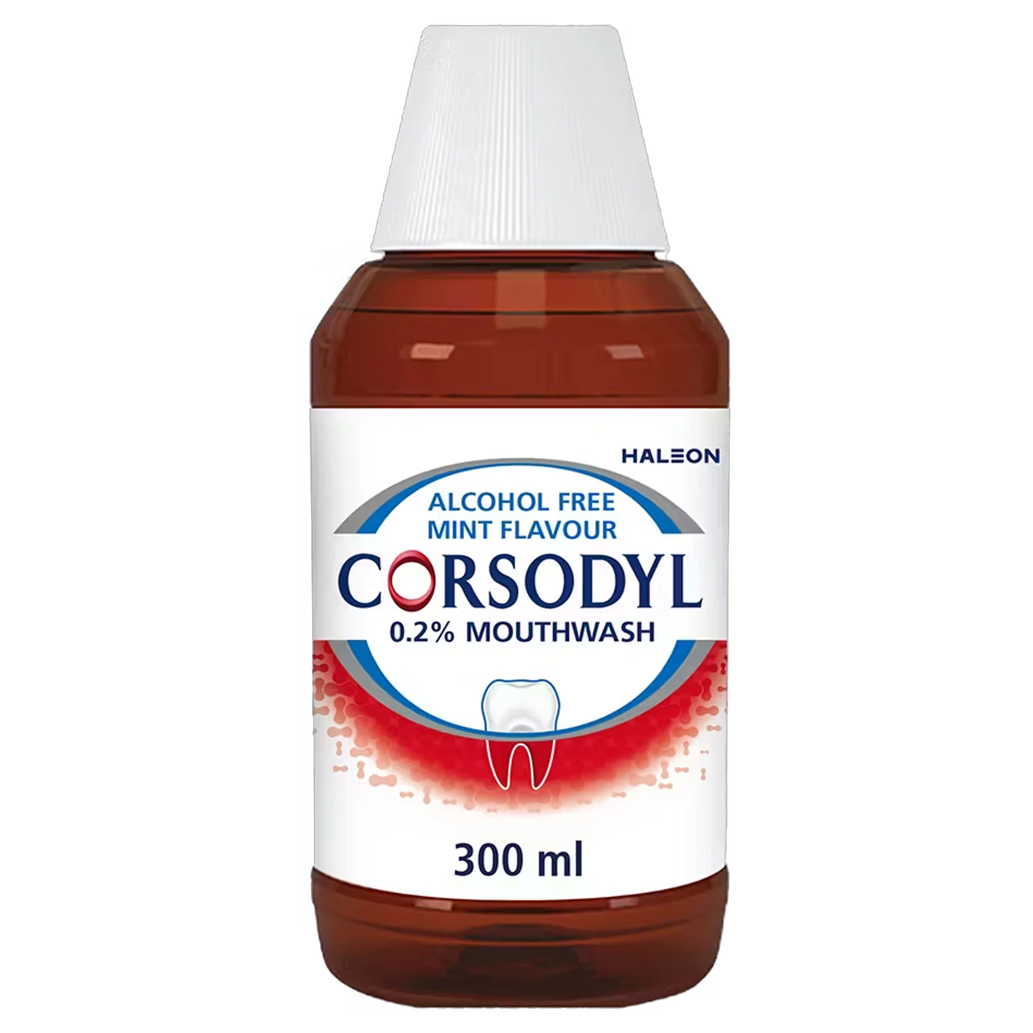 Corsodyl Mouthwash Alcohol-Free contains chlorhexidine digluconate, a clinically proven antibacterial ingredient that targets the bacteria responsible for gum disease. It helps reduce plaque build-up, soothe inflamed gums, and promote healing.
